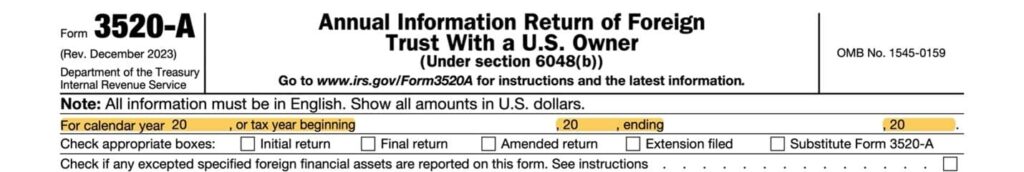 You are asked to insert the appropriate accounting period near the top of Form 3520-A. That’s the puzzle to be solved.